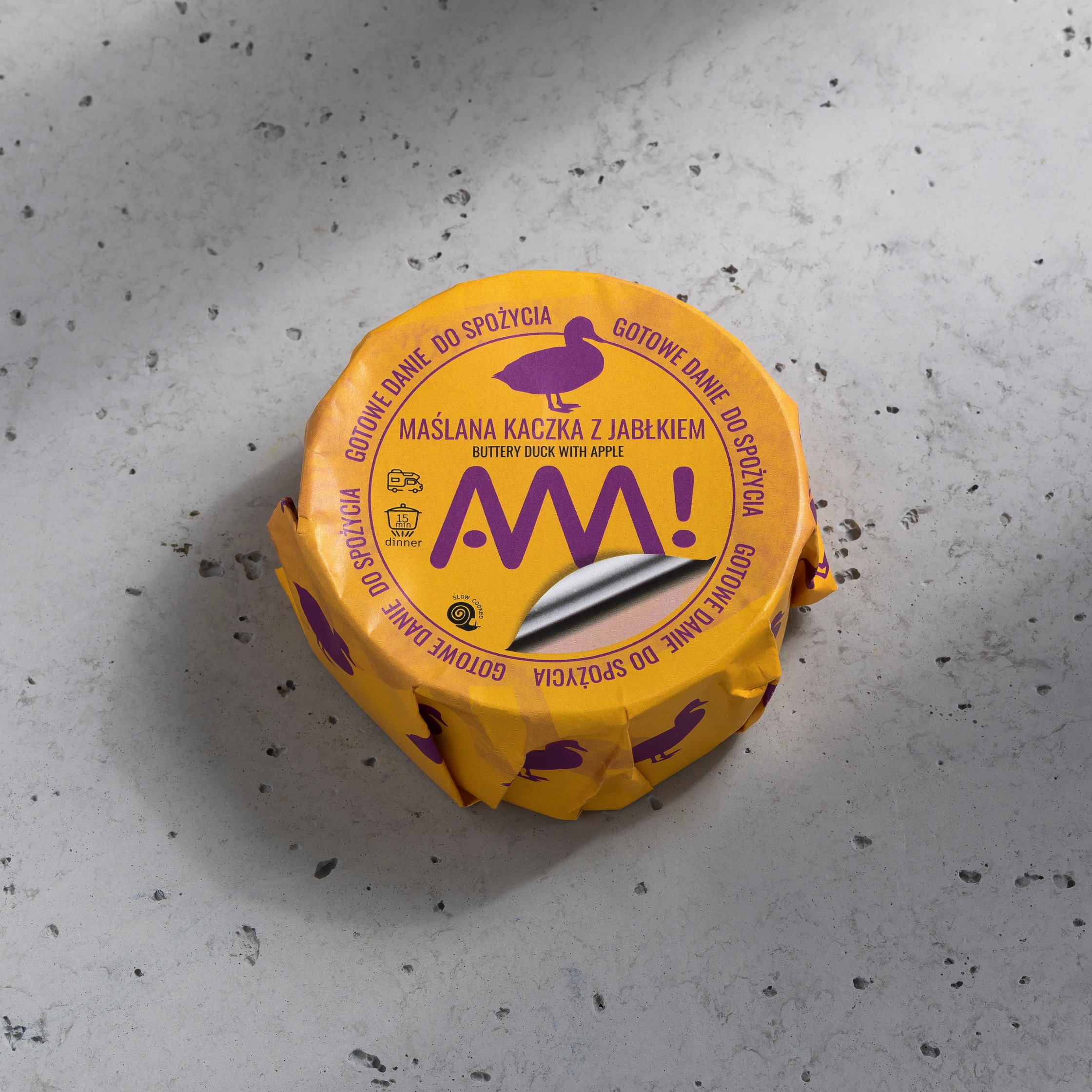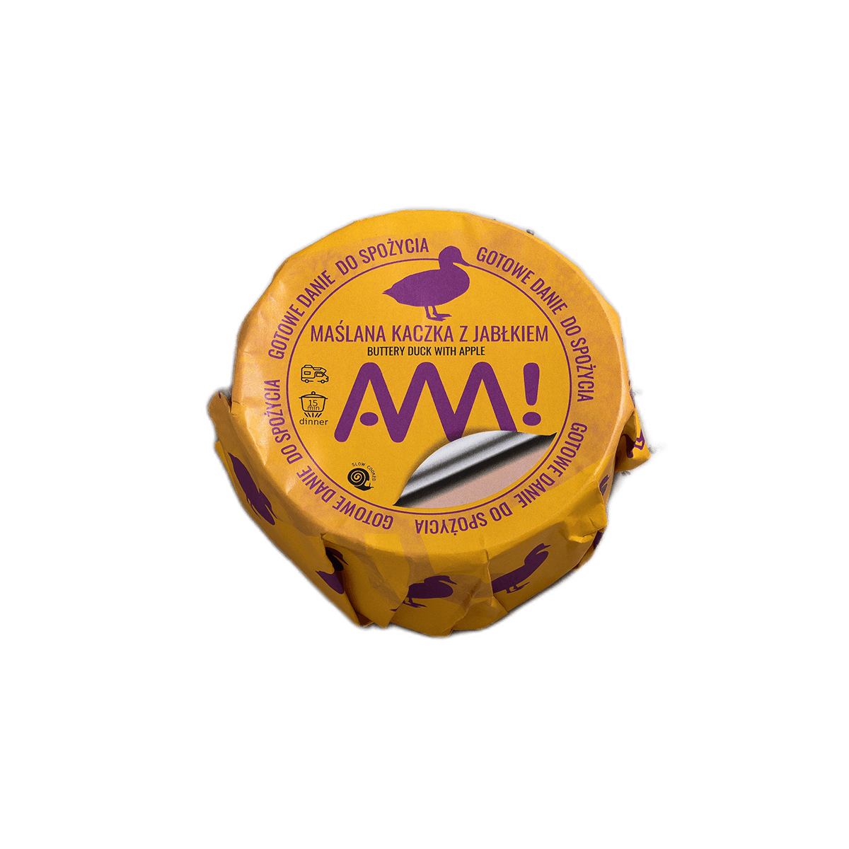 udo z kaczki (220g), masło, suszone jabłka, sól kłodawska, mąka kukurydziana, suszone pomidory.